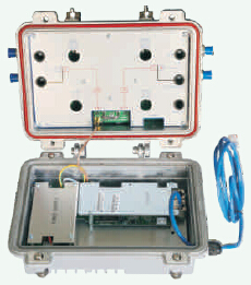 GDCBM700系列EOC局端设备基于AR7410主芯片,将IP数据信号和CATV信号混合输出到有线电视分配网,实现共缆传输广播电视节目和IP数据。它位于EOC网络的顶端,可下挂多达253台CNU终端设备。为用户提供语音、视频、数据等多种业务。